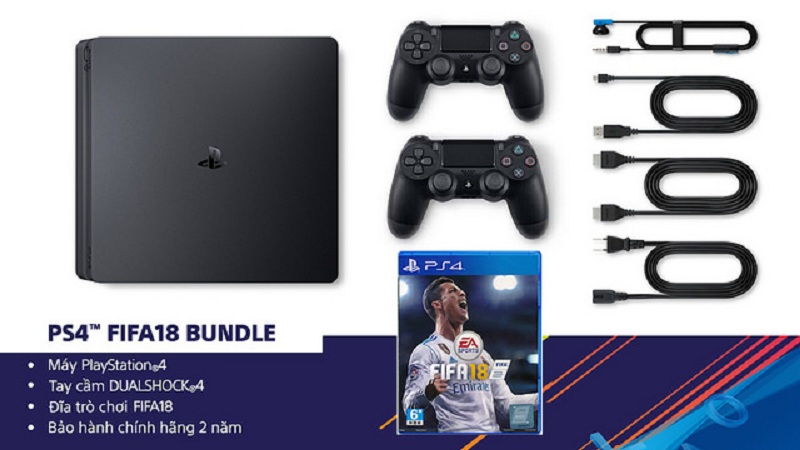 Trọn bộ sản phẩm PS4 Slim 500GB FIFA 18 Bundle bao gồm: